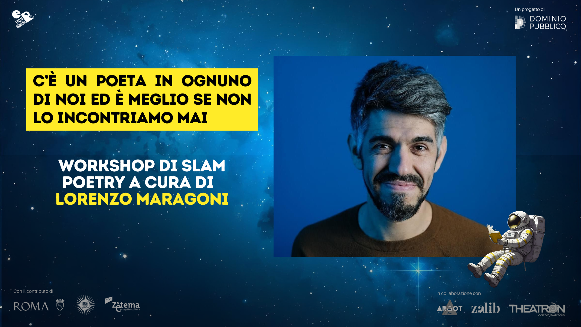 Workshop di poetry slam attraverso esempi e indagando analogie e differenze con il teatro, la poesia scritta e l’arte performativa. Saranno proposti esercizi di scrittura e di performance che porteranno nel corso delle due giornate alla scrittura di uno o due testi poetici che, su base volontaria, potranno essere performati davanti al pubblico in una serata finale di restituzione.